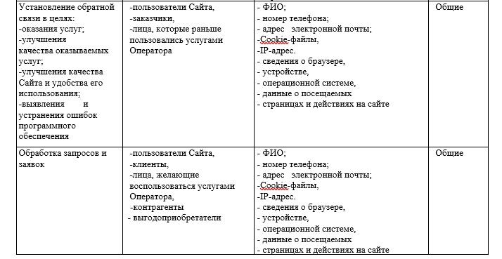 1.1. Обработка персональных данных для иных целей допускается только при получении отдельного согласия пользователя и/или при наличии законных оснований, предусмотренных законодательством.